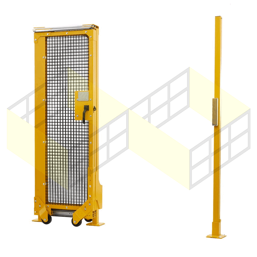 1200 x 2300 mm 1 x 1 Steel Mesh LH Total Access Double Slide Gate Assy. W/ Euchner Handle Plate & Green Weld Screen